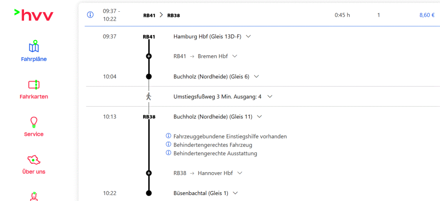 wir möchten euch am Sonntag, den 26.10.2025 zu einer gemeinsamen Wanderung ins Büsenbachtal in der Lüneburger Heide einladen. Treffpunkt ist der Bahnhof Büsenbachtal, wo es auch Parkplätze gibt. Dort sammeln wir uns um 10:45 Uhr, dann ist auch die Bahn aus Hamburg eingetroffen. Starten werden wir um 11 Uhr. Wir werden entweder die lange Strecke mit 13,4 km oder die kurze Strecke mit 4,7 Kilometer gehen. Das werden wir gemeinsam vor Ort entscheiden. Als Abschluss können wir noch im Café-Restaurant ,,Der Schafstall" einkehren. Im Anhang habe ich euch die Bahnverbindung für den 26.10.25 vom Hamburger Hauptbahnhof nach Büsenbachtal, eine Karte mit der Parkplatzmarkierung und die Wanderstrecke beigefügt.